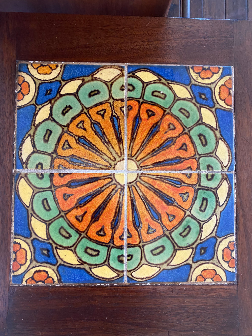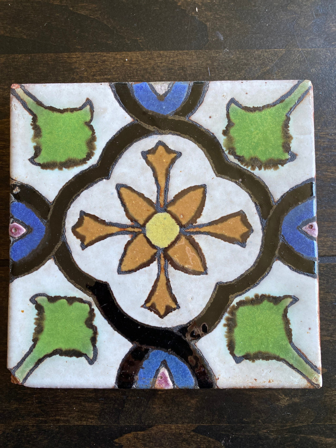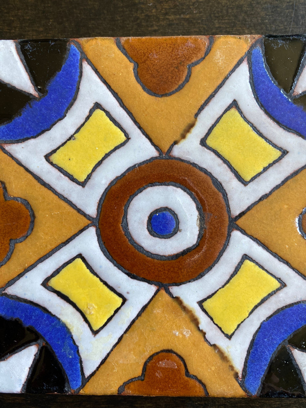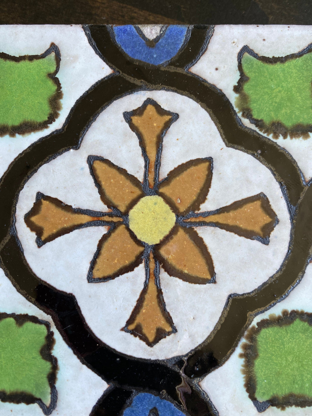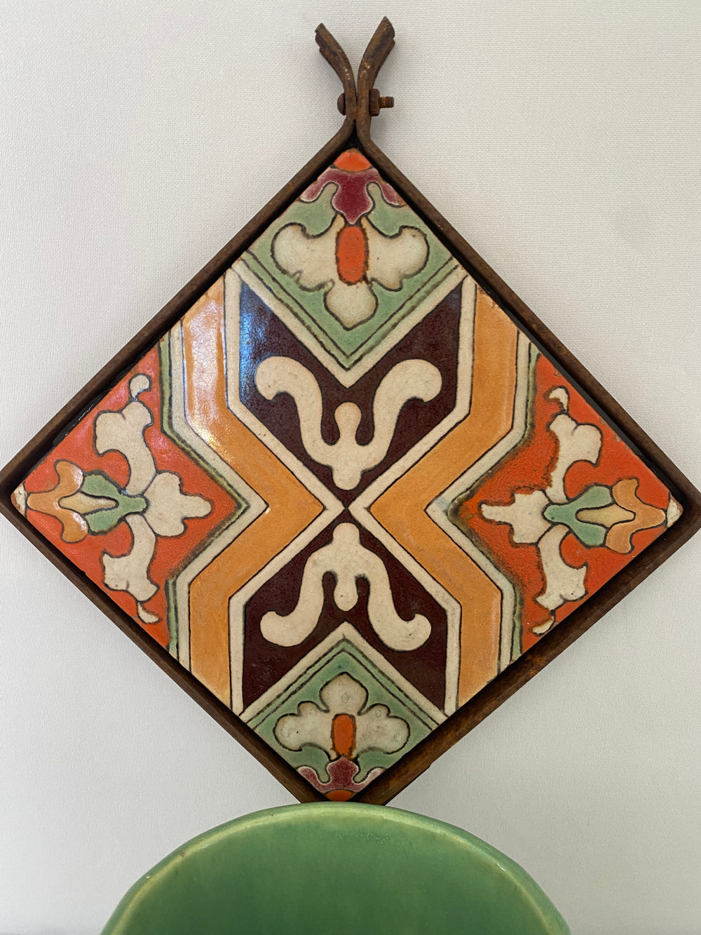 Rare Malibu vintage tile created in Malibu, California by the Malibu Potteries during the late 1920s through to 1932. Today the current location of the former pottery is the Adamson House, a museum and a must visit when in So Cal. The pottery was active during the Golden Era of pottery and tile and as one of the top quality makers was used by architects in such distinguished locales as the Los Angeles City Hall. Sought after today by collectors we actively buy collections or individual pieces. The most renowned Ceramicist of the day, Rufus Keeler, was the creative force behind this iconic company (and many others).